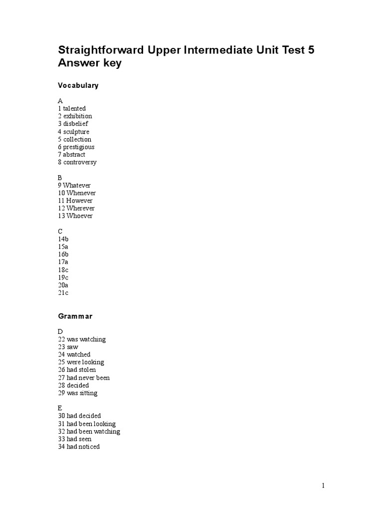 Unit 5 test answer key.